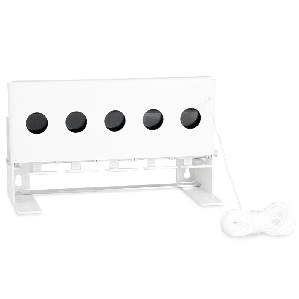 Diese Metallkonstruktion mit fünf präzisionsgefertigten Zielen ist die perfekte Wahl für Schützen aller Niveaus. Jede Zielscheibe klickt automatisch, wenn sie getroffen wird, und gibt sofortige Rückmeldung über Ihre Treffsicherheit. Durch einfaches Ziehen an der Schnur werden die Ziele wieder sichtbar und Sie können Ihr Sportschießen, Ihren Biathlon oder Ihren Spaßwettbewerb fortsetzen. Perfekt für Außen- und Innenbereiche.