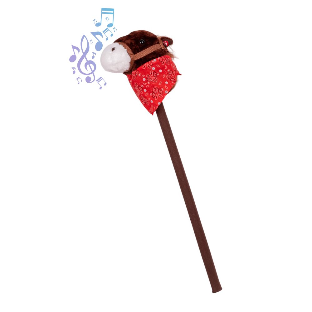 Steckenpferd Pferd auf einem Stock, der Geräusche macht. Niedliches und interaktives Design für kleine und große Kinder. mehr