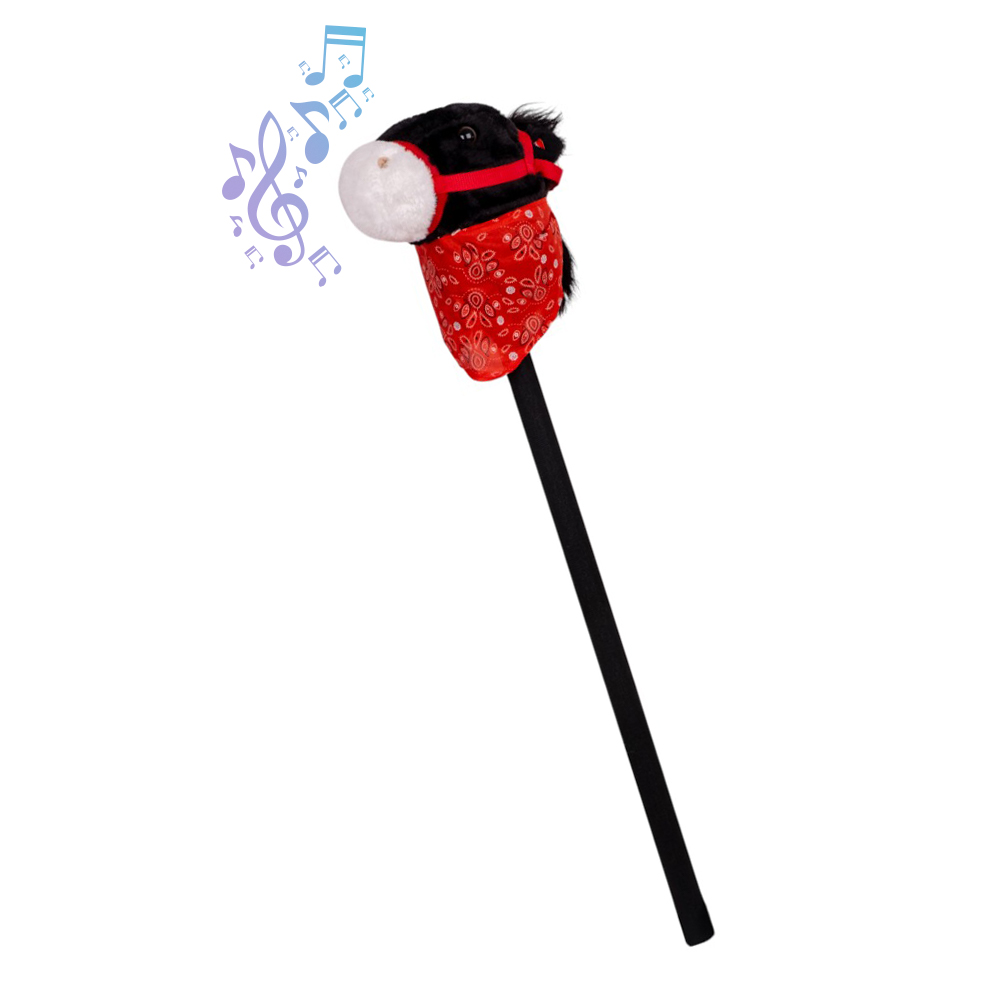 Steckenpferd Pferd auf einem Stock, der Geräusche macht. Niedliches und interaktives Design für kleine und große Kinder. mehr