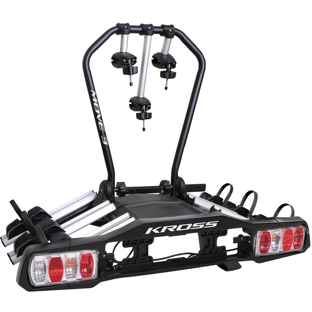 Der Kross MOVE 3 Anhängerkupplungs-Fahrradträger ist ein moderner und praktischer Anhängerkupplungs-Fahrradträger mit einer stabilen Plattform für bis zu drei Fahrräder aller Art - vom Rennrad über Mountainbikes bis hin zu Kinderrädern. Dank seiner leichten Aluminiumkonstruktion ist er einfach zu handhaben und lässt sich problemlos mit einer Hand montieren.