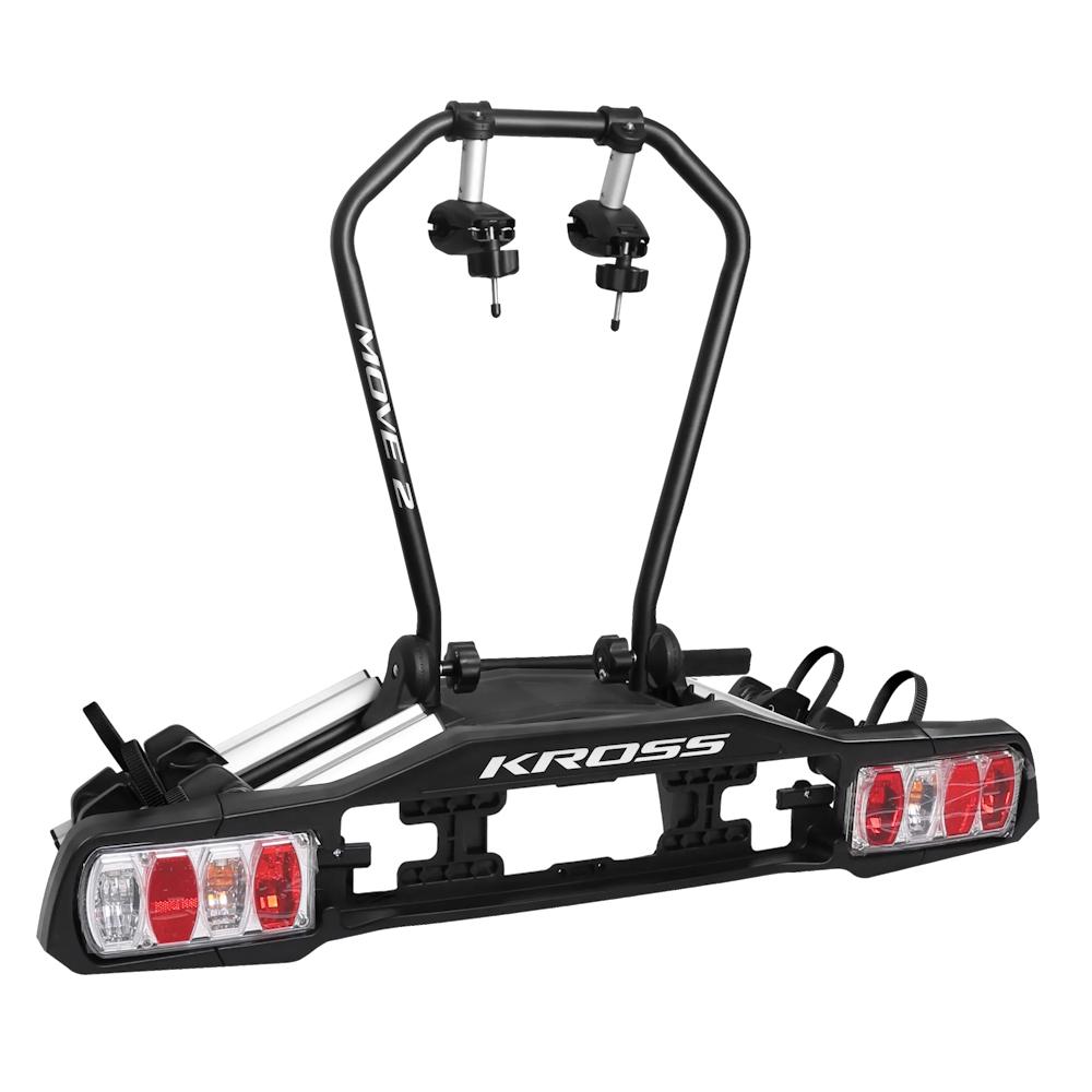 Der Kross MOVE 2 Fahrradträger für die Anhängerkupplung ist ein kompakter und leichter Anhängerkupplungsträger für den sicheren Transport von zwei Fahrrädern - Rennrädern und Mountainbikes. Dank der Kombination aus Aluminiumkonstruktion und verstärktem Kunststoff zeichnet er sich durch sein geringes Gewicht und seine einfache Handhabung aus. Die Montage ist mit einer Hand leicht zu bewerkstelligen.
