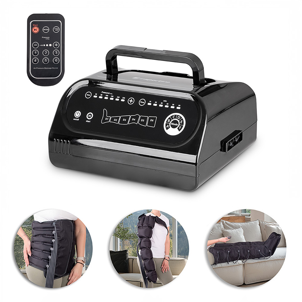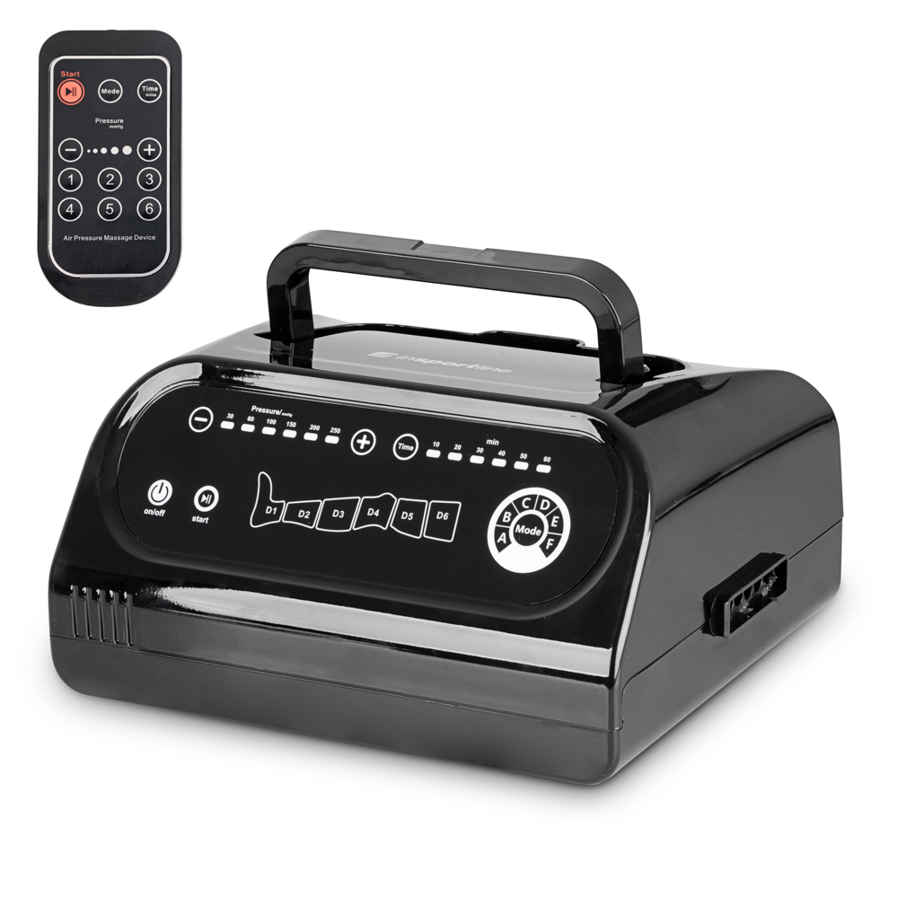 Das inSPORTline Compisimo Hauptgerät verfügt über ein intuitives Bedienfeld und eine Fernbedienung. Es bietet eine Auswahl von 6 Programmen, von der Entspannung bis zur intensiven Tiefenmassage. Sie können sowohl die Stärke des Drucks als auch die Dauer des Zyklus selbst einstellen .