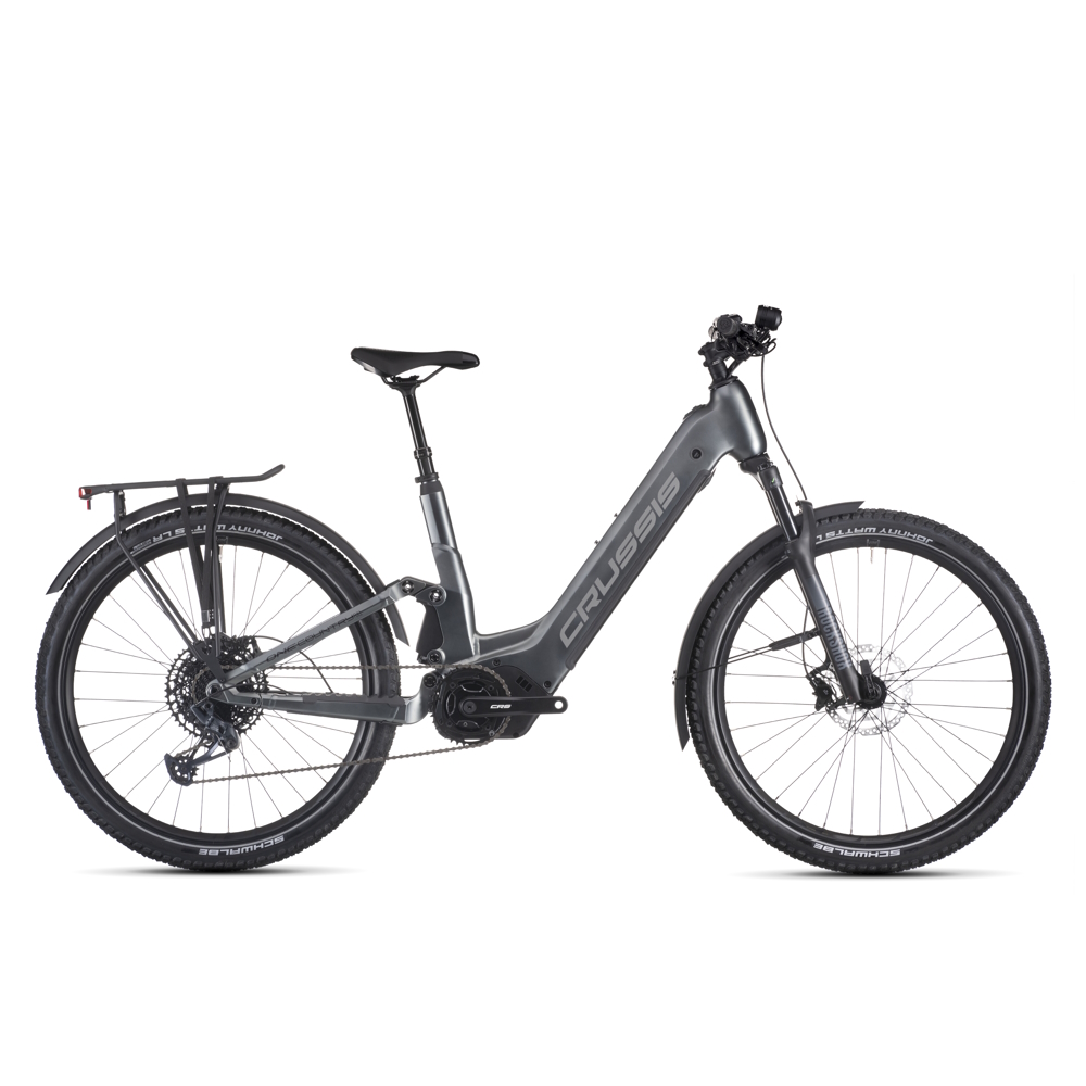 Mit dem vollgefederten E-Bike ONE-Country Full 10.10 von Crussis kommen Sie bequem überall hin, wo Sie hinwollen! Dank des abgesenkten Rahmens eignet es sich hervorragend für Fahrten in der Stadt oder zum Einkaufen, verfügt aber auch über eine Federgabel und einen Dämpfer. So können Sie es auch im Gelände oder auf Radwegen einsetzen.