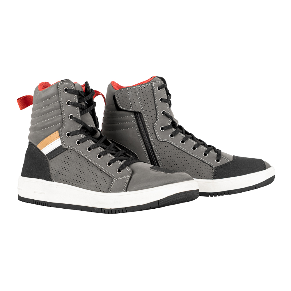 W-TEC Sueden-Motorradstiefel! Auf den ersten Blick sehen sie aus wie bequeme Turnschuhe für die Stadt. Aber unter der Oberfläche verbirgt sich einiges an Ausrüstung. Obermaterial aus echtem Leder, doppelte Nähte und ein seitlicher YKK-Reißverschluss mit Klettverschluss für schnelles Anziehen, wenn Regen oder Hunger einen verfolgen. Der Schnürverschluss ist für Kenner gedacht, die den Verschluss je nach Lust und Laune (und Reifendruck) anpassen möchten. Das lässige Design verbirgt alle Biker-Vorzüge - so sehen Sie auch nach einer Fahrt aus, als wären Sie nicht gerade 150 km gefahren, sondern nur auf einen Kaffee vorbeigekommen.