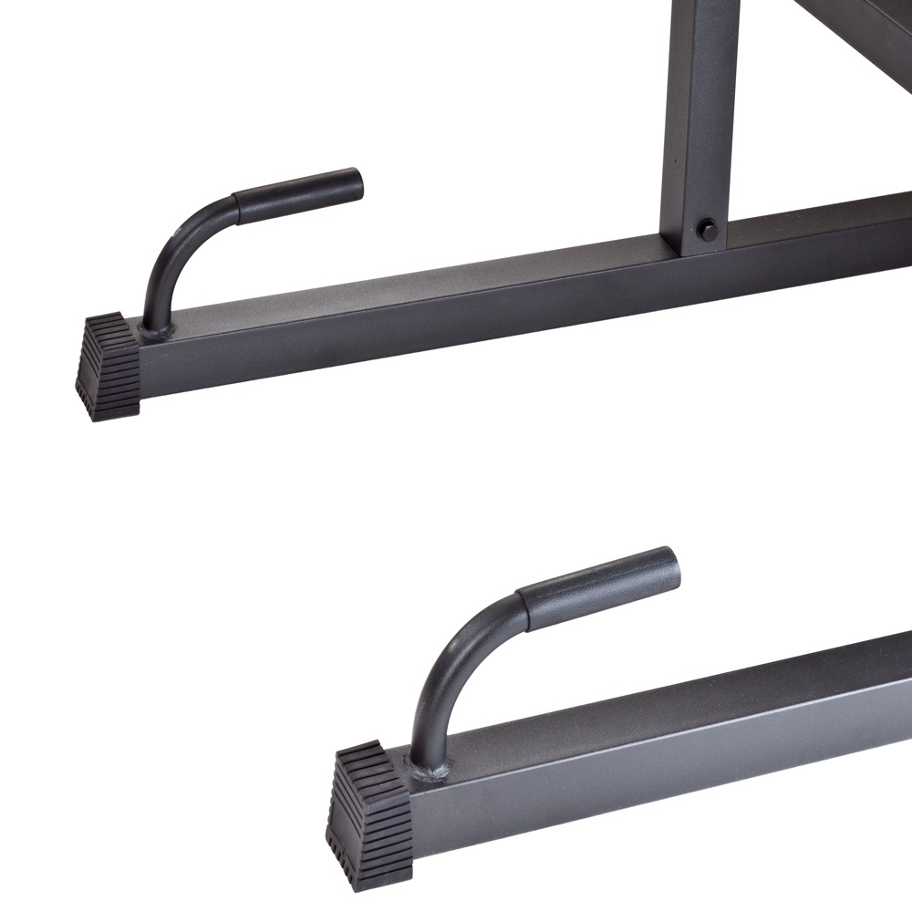 inSPORTline Power Tower PT80 Multifunktionsreck ist ein idealer Helfer bei der Kräftigung des ganzen Körpers mit dem eigenen Gewicht. Die Stahlkonstruktion mit dem Rahmenprofil 50 x 50 mm ist sehr beständig und stabil. Oberes Reck vom Durchmesser 25 mm ist mit einem rutschfesten Muster versehen, wodurch festes Ergreifen bei der Übung sichergestellt wird. Untere Griffe dienen zur Durchführung der Liegestütze (Dips), mit denen die Brustmuskulatur und die Trizepse geformt werden können. Der Barren ist hingegen zum perfekten Aufbau der Bauchmuskulatur geeignet. Nicht zuletzt verfügt inSPORTline Power Tower PT80 Multifunktionsreck über weiche Polsterung, rutschfesten Abschluss der Füße oder die Tragfähigkeit von 120 kg. Aufgrund des hervorragenden Preis/Qualität Verhältnisses wurde inSPORTline Power Tower PT80 Multifunktionsreck zu einem sehr beliebten und gefragten Reck zum Heimeinsatz.