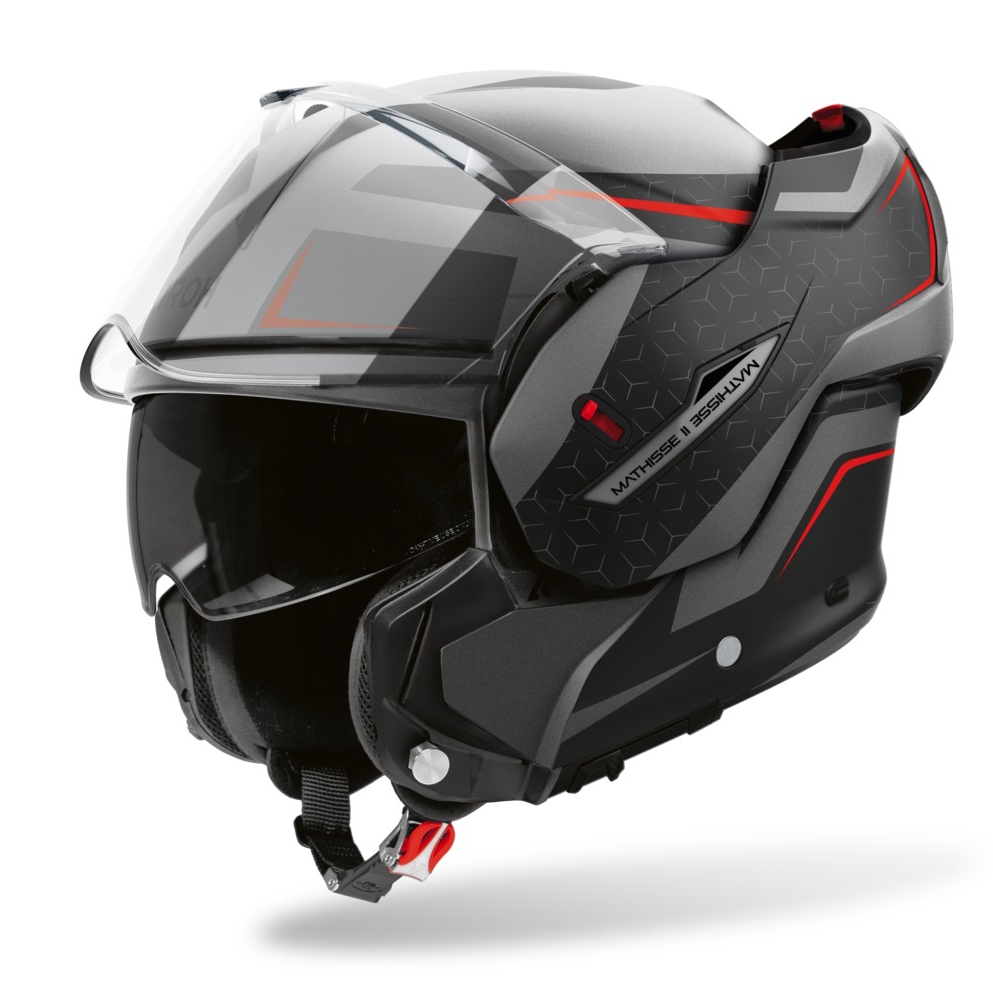 Die AIROH MATHISSE 2 Klapphelm kann Ihren Charakter mit einer einfachen Geste zu ändern, der ideale Partner, der immer bereit ist, jedes Abenteuer und Situation zu stellen. Seine Innenausstattung betont den Komfort auch bei intensivstem und längerem Gebrauch, selbst an den heißesten Tagen oder unter anderen schwierigen klimatischen Bedingungen. Die P/J-Homologation ermöglicht die Verwendung dieses Klapphelms sowohl in offener als auch in geschlossener Form.