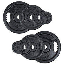 Das Set besteht aus 2x Hantel-Scheiben vom Gewicht 1,25; 2,5; 5; 10; 15; 20 und 25 kg.